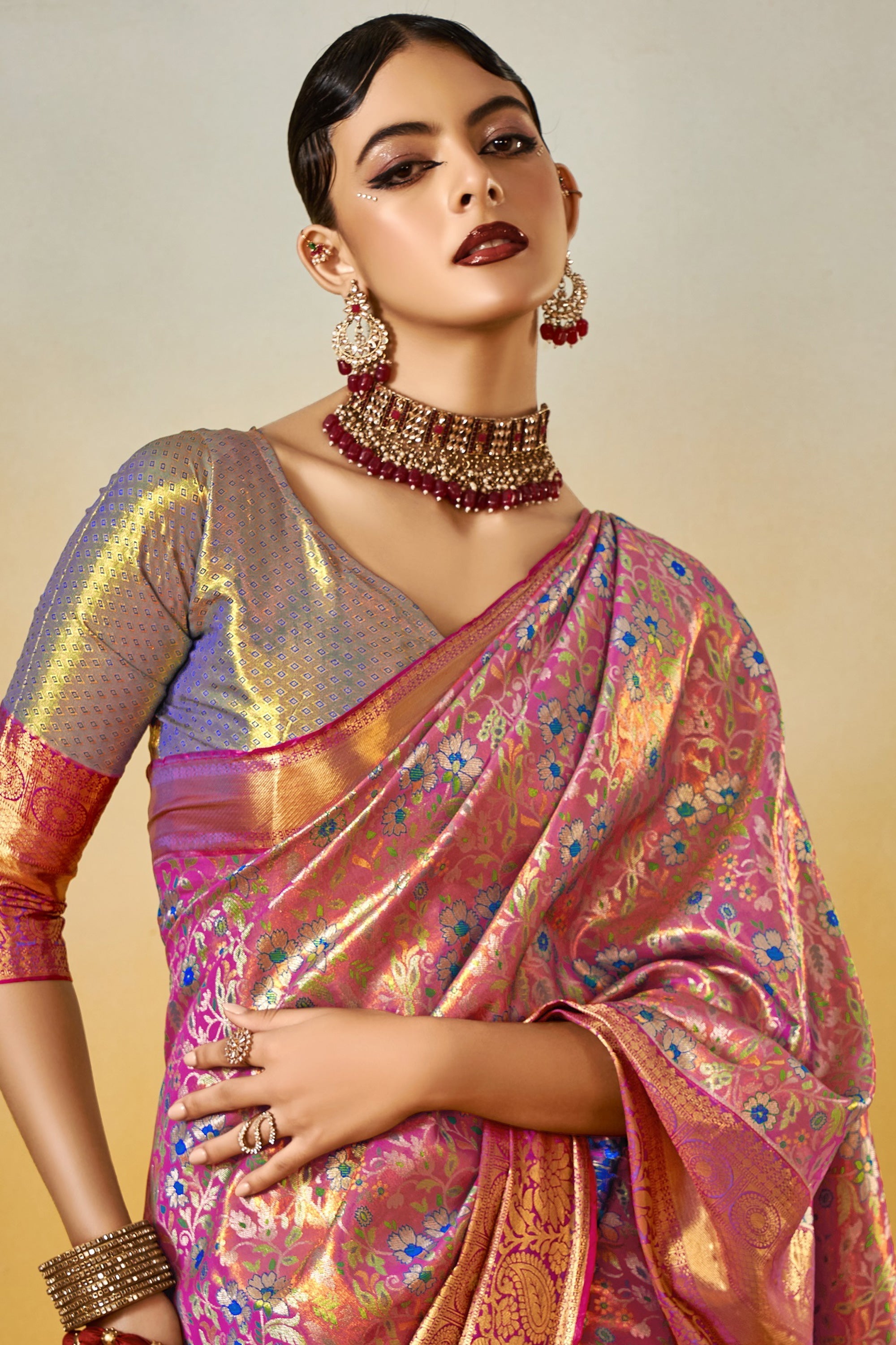 Purple Art Silk Zari Weaving Work Festive Wear Saree