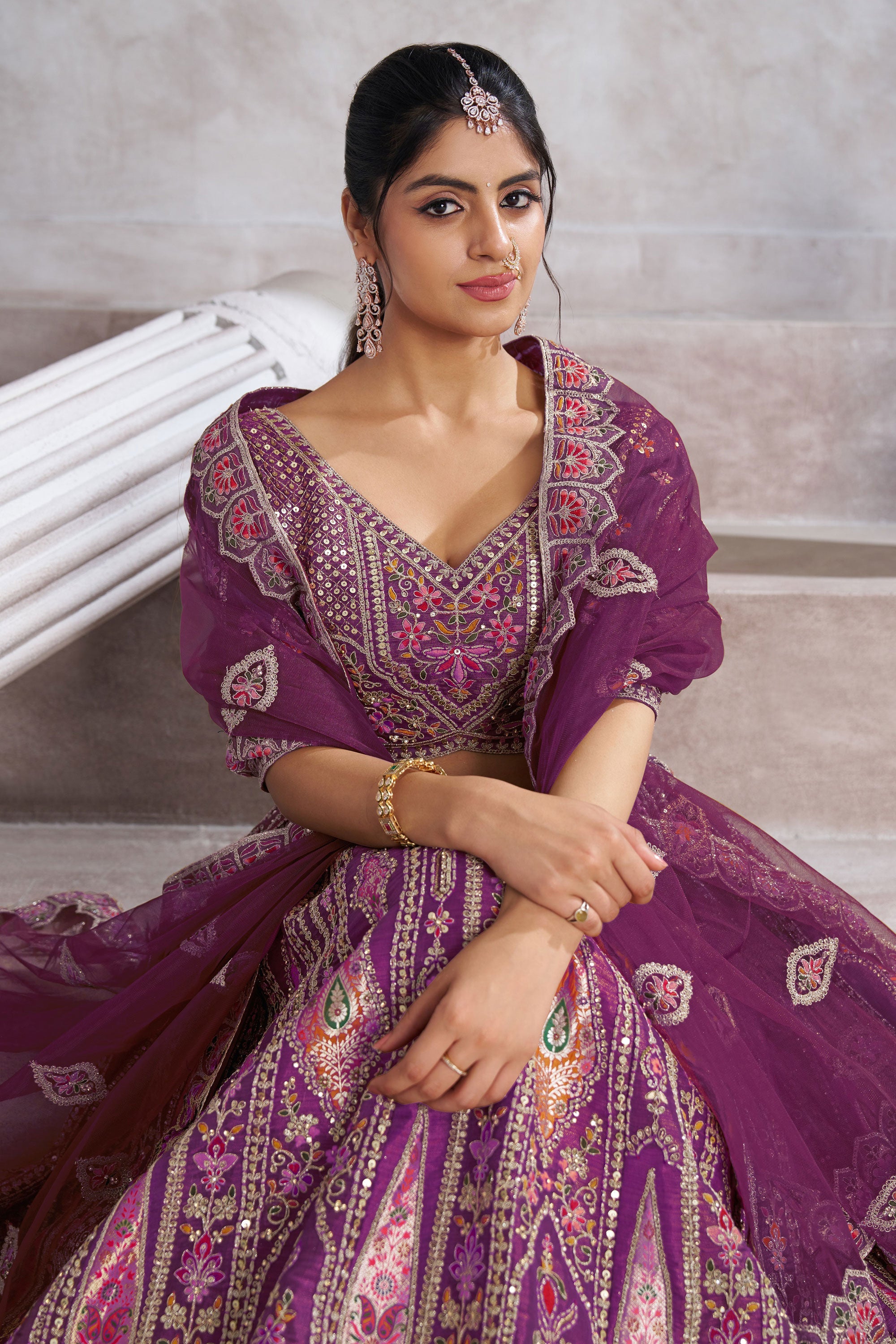 Experience the luxurious feel of our Banarasi Silk Fabric Lehenga Choli. This designer 3-piece ensemble is a stunning combination of traditional artistry and contemporary design. Crafted from high-quality Banarasi silk, it offers both elegance and comfort, perfect for any special occasion. The rich colors and intricate patterns will make you stand out effortlessly. Whether you're attending a wedding, festival, or a special event, this lehenga choli will make you shine.