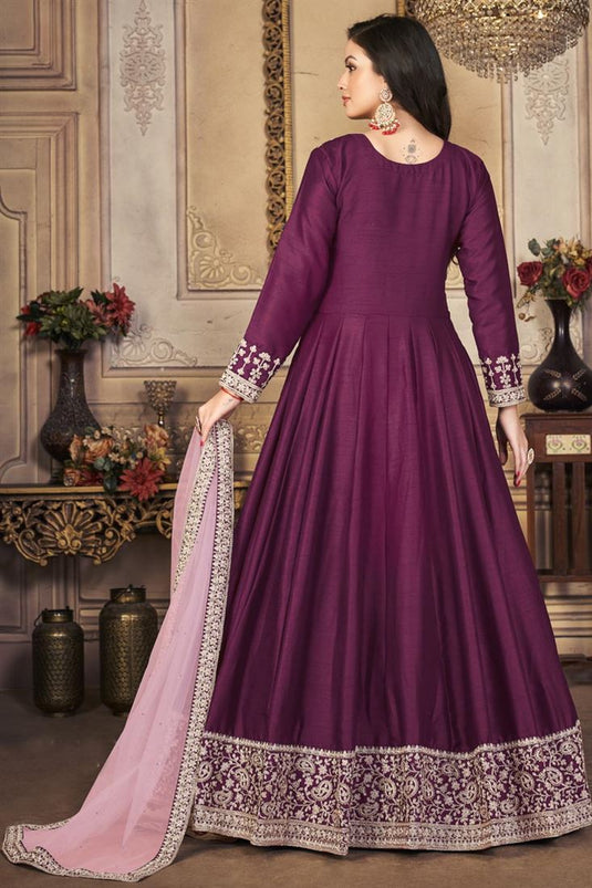 Purple Color Art Silk Fabric Function Wear Fascinating Anarkali Suit
