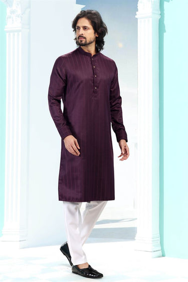 Purple Color Art Silk Kurta Pyjama Set for Men