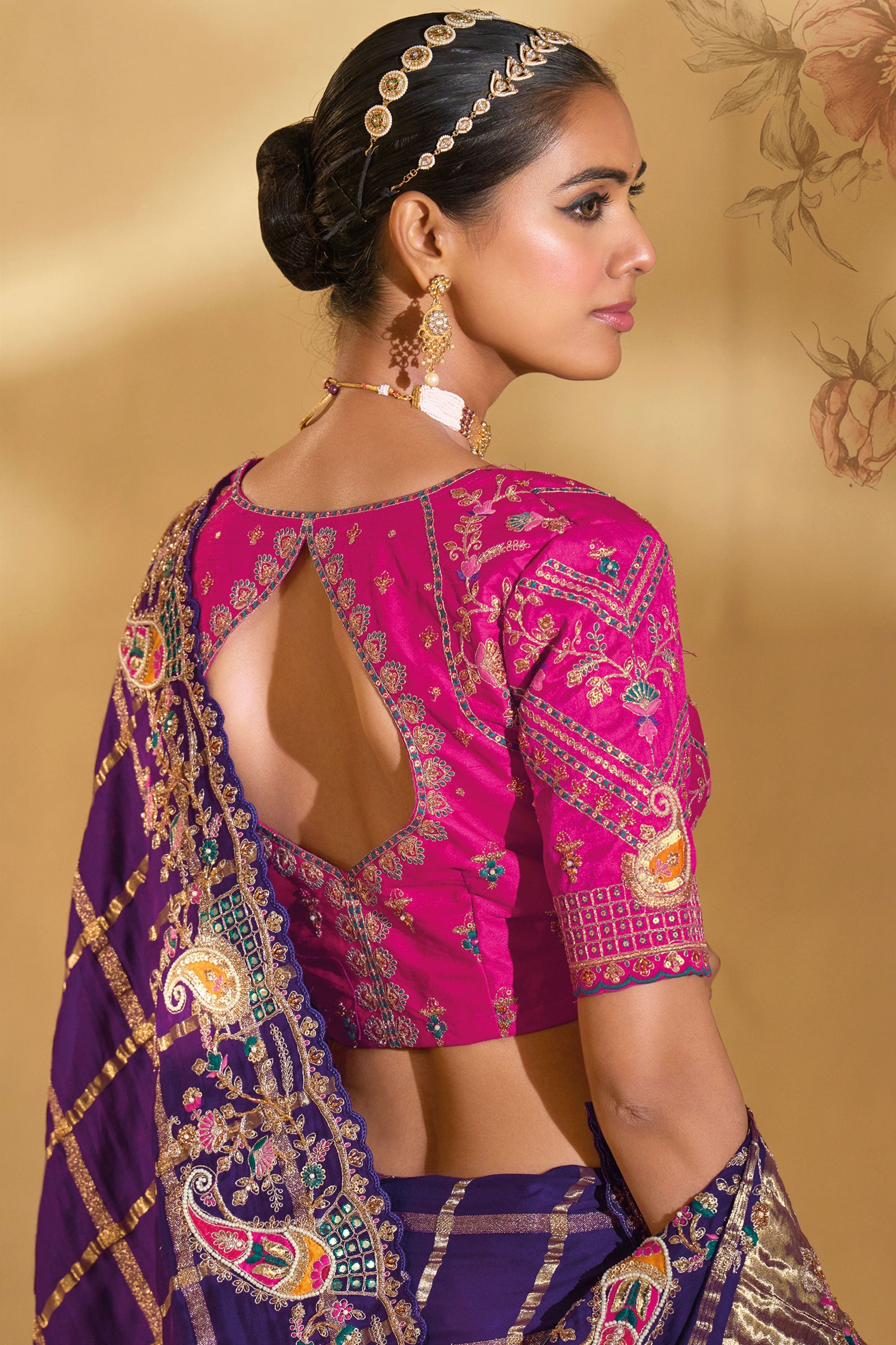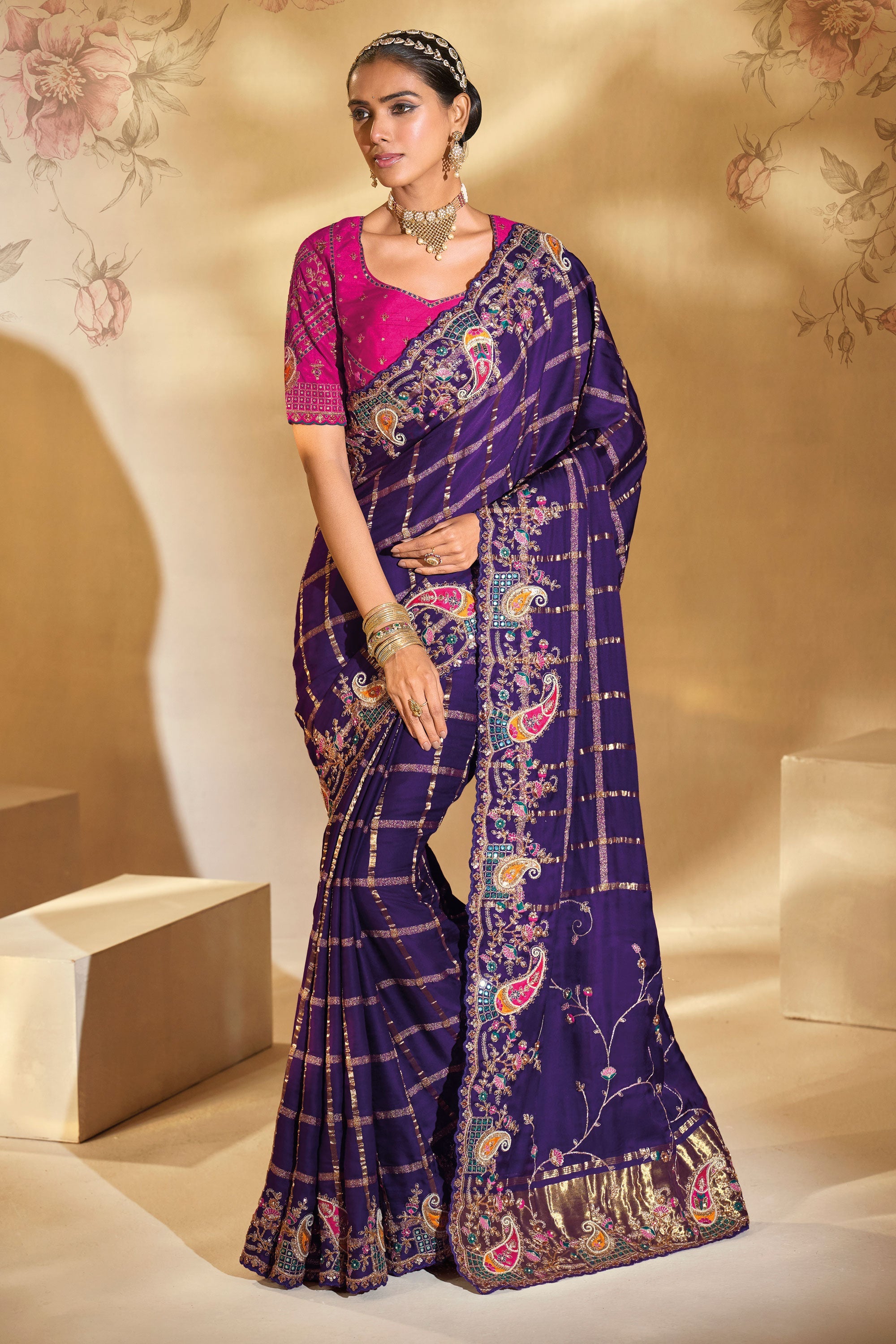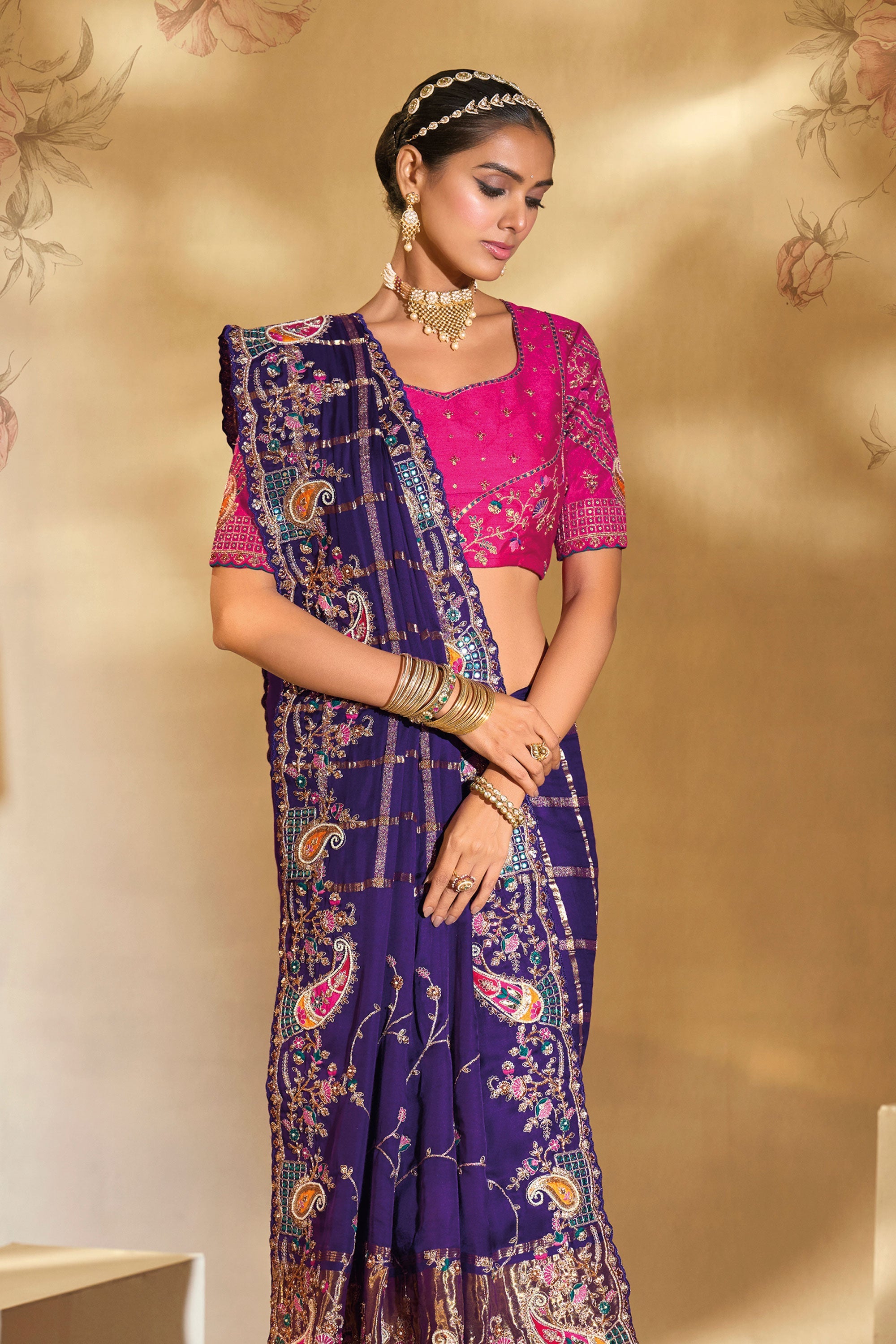 Purple Color Gajji Silk Fabric Stunning Heavy Embroidered Saree