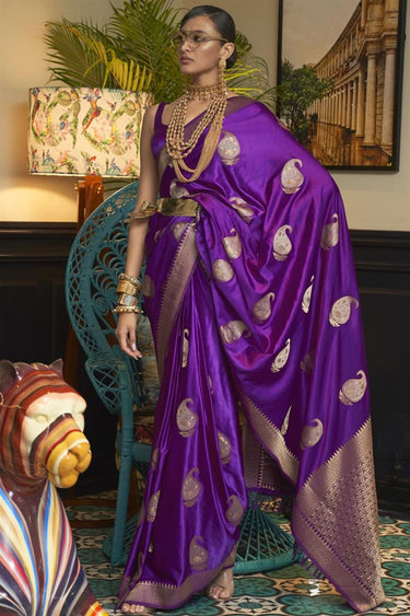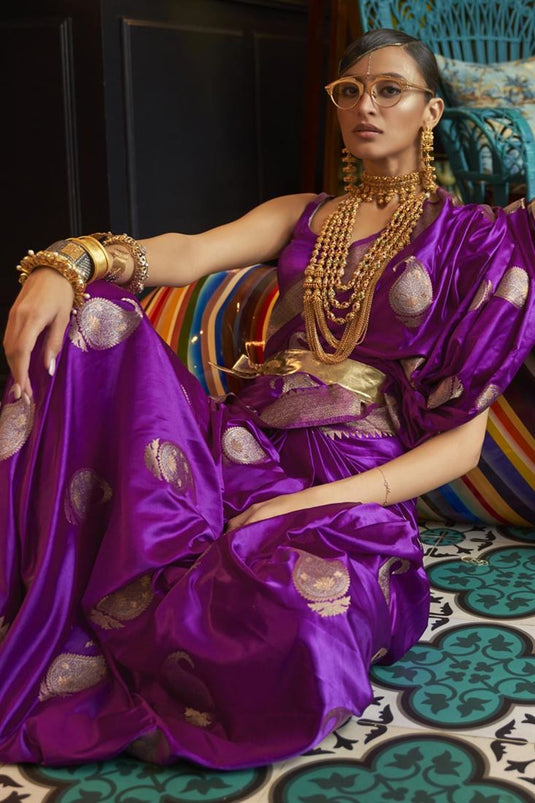 Purple Color Party Wear Satin Fabric Lovely Saree
