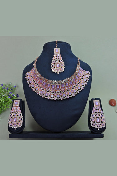 Purple Color Sober Alloy Necklace With Earrings and Mang Tikka
