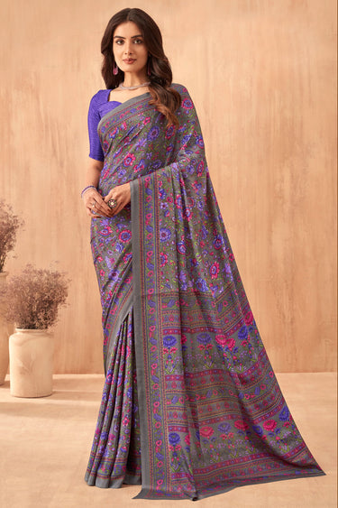 Purple Printed Crepe Silk Daily Wear Uniform Saree With Blouse