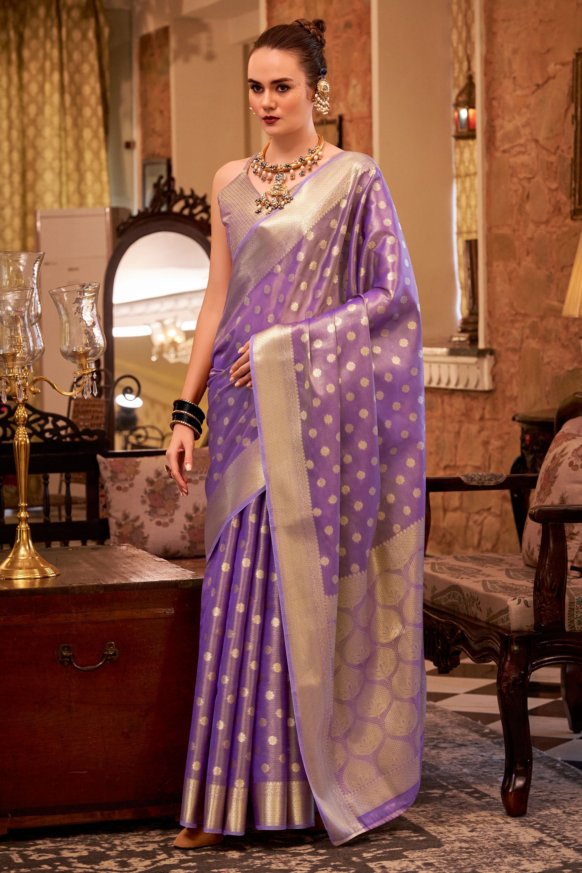 Purple Sangeet Wear Tissue Silk Handloom Zari Weaving Saree