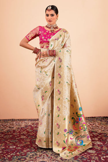 Radiance Beige Function Wear Paithani Silk Weaving Saree
