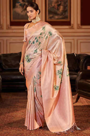 Radiant Cream Color Jacquard Fabric Digital Printed Saree