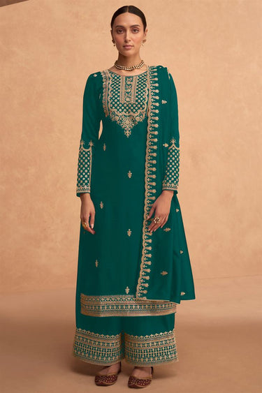 The stunning embroidery work on the Green Palazzo Suit adds a touch of sophistication, making it an ideal choice for formal occasions such as weddings, engagements, and other functions. The embroidery work is skillfully crafted by our expert artisans, ensuring that every detail is flawless and adds to the overall beauty of the outfit.