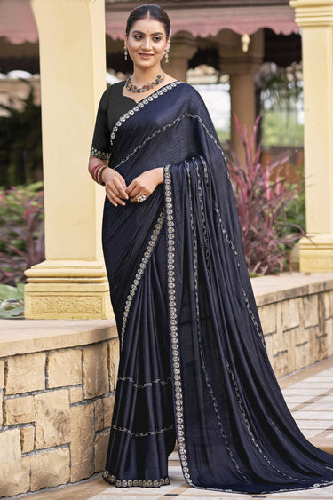Radiant Navy Blue Color Chiffon Fabric Saree