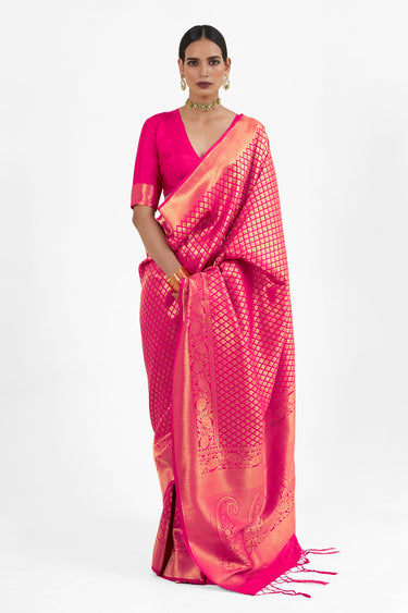 This alluring Handloom Weaving Silk Saree can elevate your traditional style quotient. Skillfully handwoven by artisans, this saree displays a perfect amalgamation of cultural richness and modern aesthetics. Ideal for weddings, parties, and ceremonial events. It comes with a matching blouse piece to give you a complete outfit. Get ready to win compliments for your choice as you dress in this elegant saree.