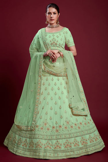 Radiant Sea Green Georgette Lehenga with Sparkling Zarkan Embellishments for Special Occasions