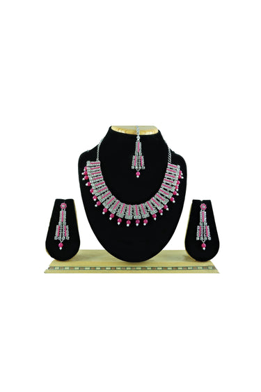 Rani Color Engaging Alloy Material Necklace Set Earrings And Mang Tikka For Women