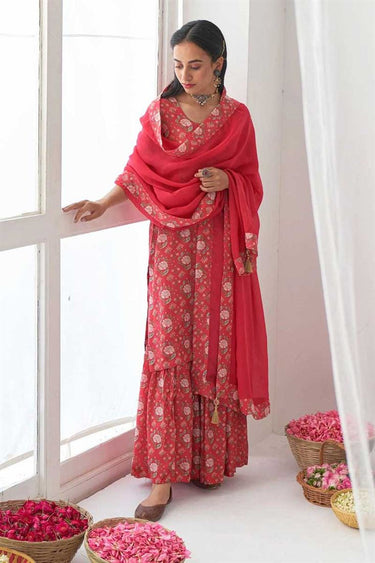 Rani Color Muslin Fabric Tempting Printed Sharara Suit
