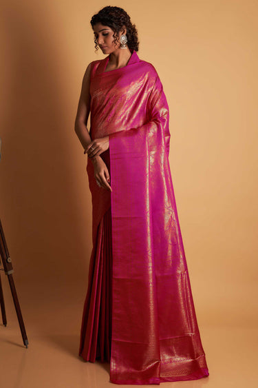 Rani Color Two Tone Kanjivaram Silk Fabric Fancy Weaving Work Sangeet Wear Saree