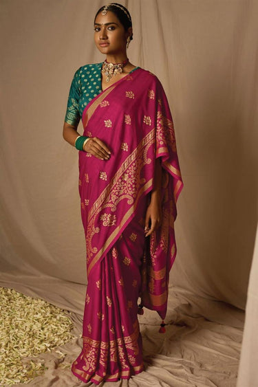 Rani Color Weaving Work On Brasso Fabric Fantastic Saree