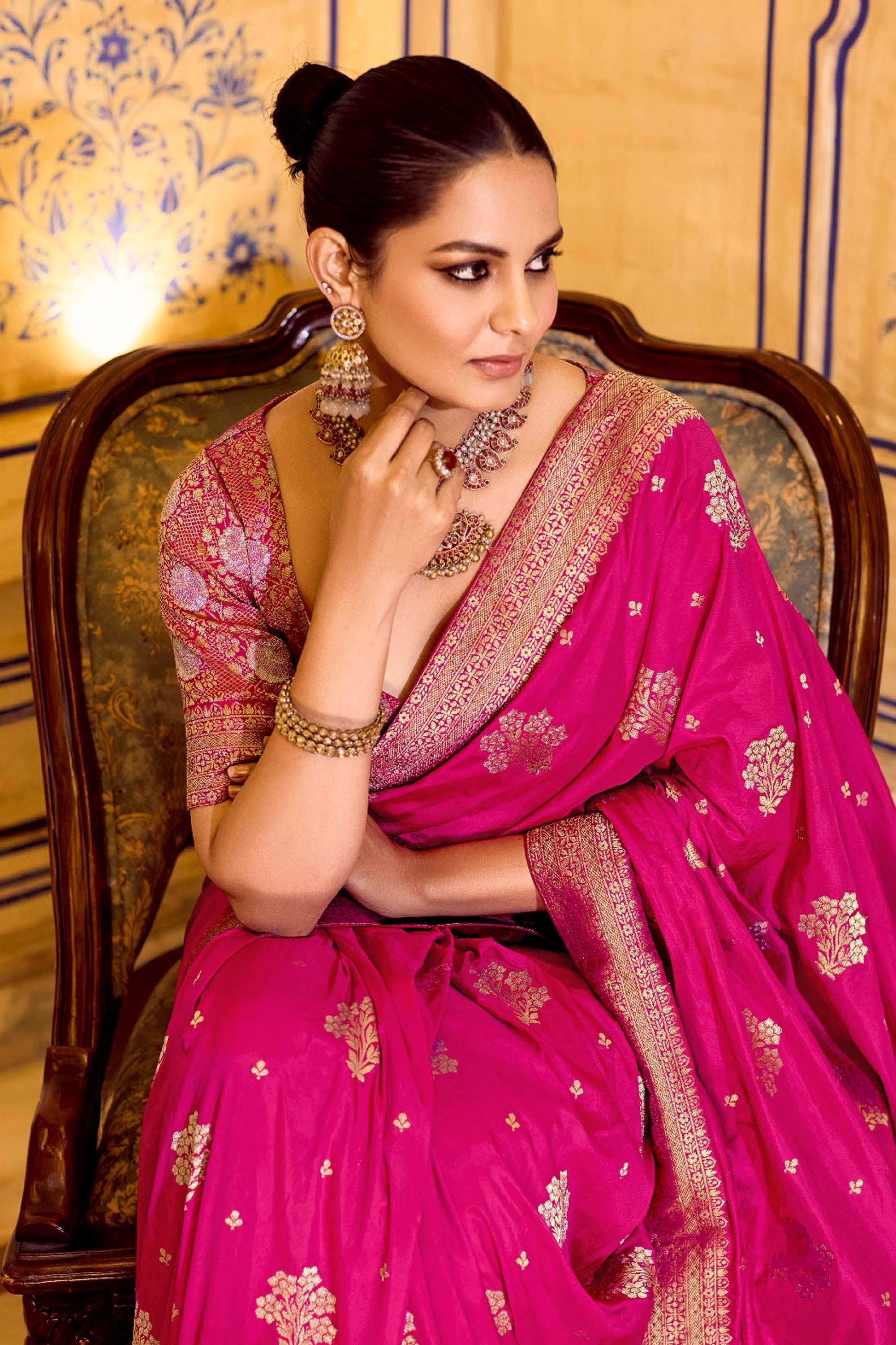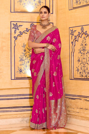 Rani Crepe Silk Weaving Work Saree For Wedding Wear