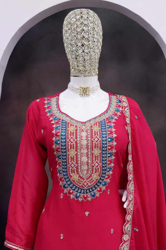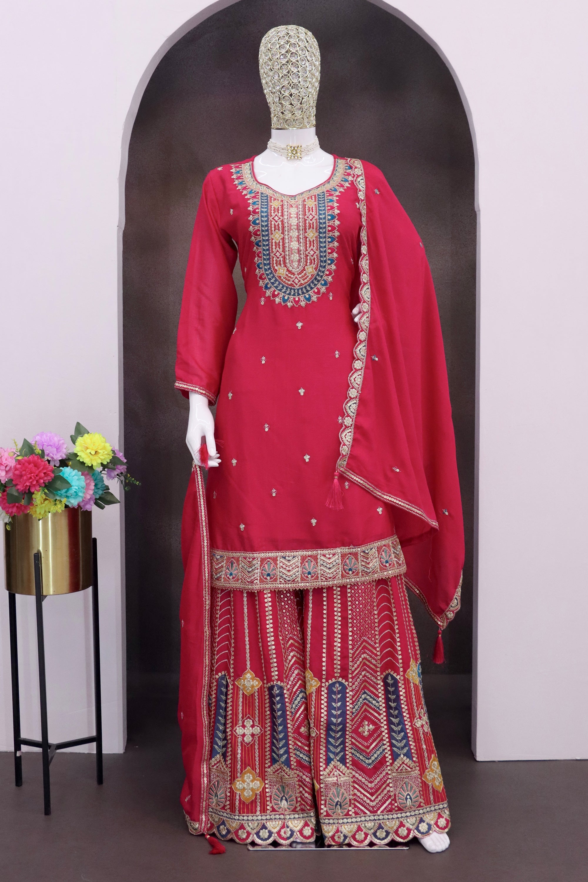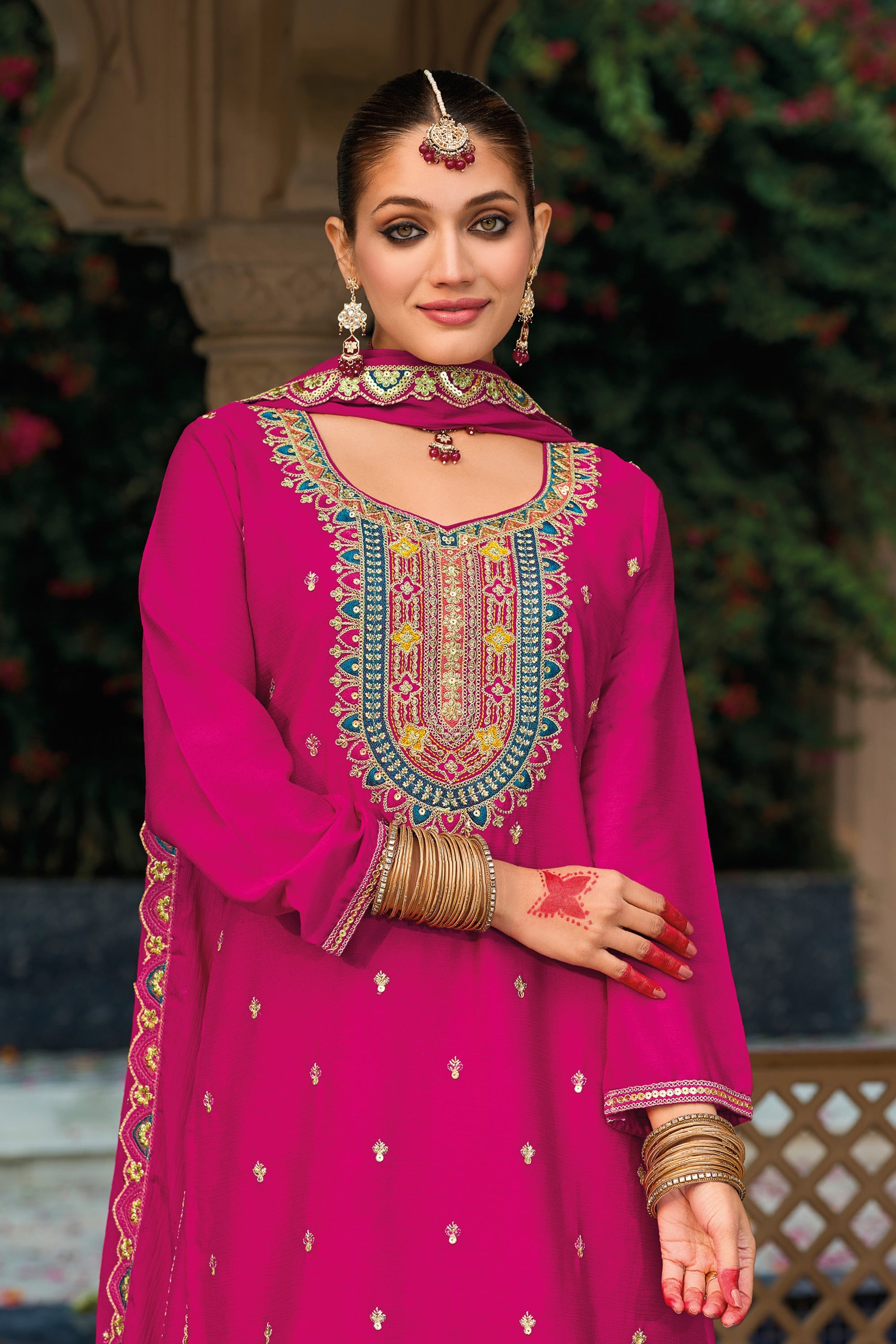 Experience timeless elegance with this Chinon Embroidered Reach Color Designer Readymade Palazzo Salwar Kameez. Crafted from premium chinon fabric, this outfit features intricate embroidery that adds a touch of sophistication to your wardrobe. The comfortable palazzo pants offer freedom of movement, making it perfect for any occasion, whether it be a festive event or a casual gathering. Available in multiple sizes to ensure the perfect fit, this designer set promises both comfort and style. Upgrade your ethnic wear collection with this stunning piece that exudes grace and class.