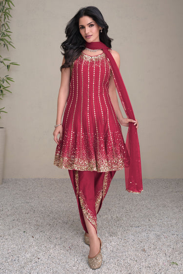 Rani Sequins Work Silk Readymade Dhoti Style Patiala Suit