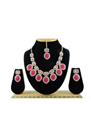 Experience luxury with the Pretty Stone Alloy Necklace Set for girls and women. Ideal for any function, the set features an alloy-based necklace, earrings, and a mang tikka, exhibiting the timeless appeal of classic premium function wear. Crafted meticulously using an alloy material, these imitation jewellery pieces mirror authentic stones, making them must-haves for every wardrobe. This eye-catching set makes a stylish statement on its own, or when paired with other accessories.