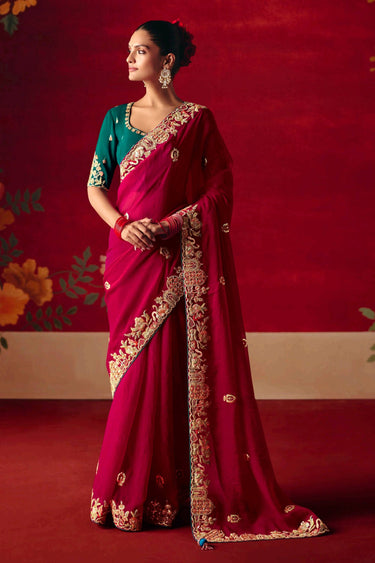 Rani Wedding Wear Art Silk Sequins Embroidered Saree
