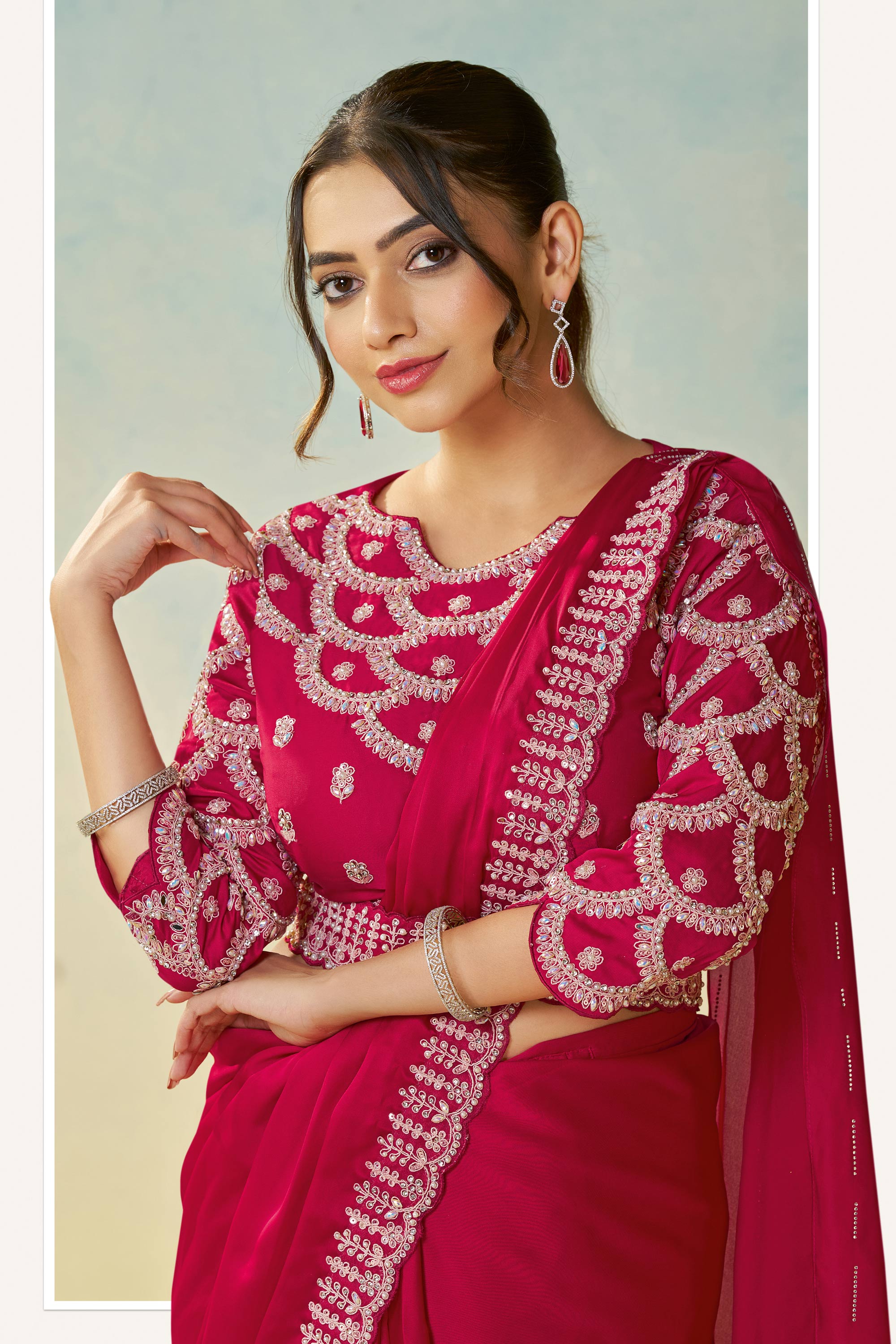 Rani Wedding Wear Satin Silk Border Work Readymade Saree