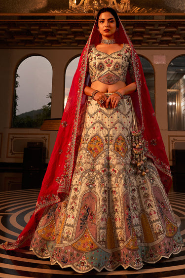 Raw Silk Fabric White Color Beatific Look Bridal Lehenga