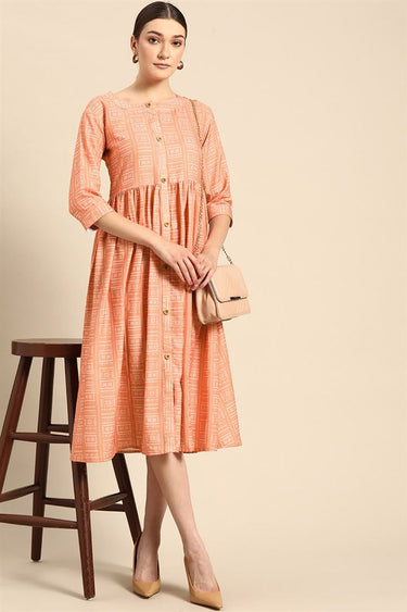 Rayon Fabric Casual Wear Solid Peach Color Printed Kurti