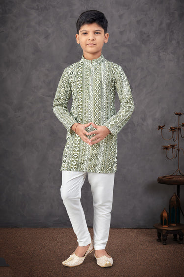 Rayon Fabric Green Color Boys Readymade Kurta Pyjama
