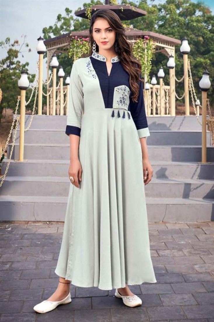 Rayon Fabric Grey Color Excellent Embroidered Work Readymade Pleasant Kurti In Daily Wear