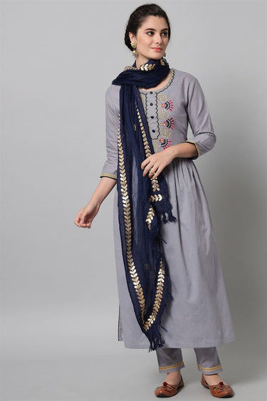 Rayon Fabric Grey Color Supreme Top Bottom Dupatta Set