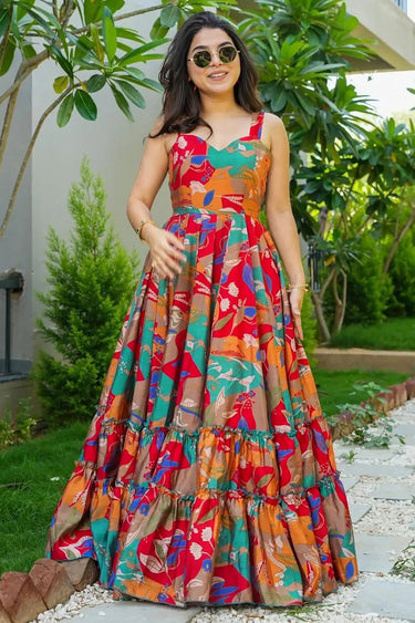 Rayon Fabric Multi Color Delicate Digital Printed Readymade Gown