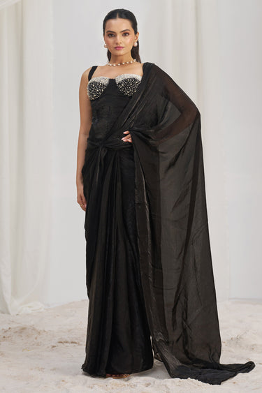 Ready To Wear Black Ombre Hand Work Organza Saree