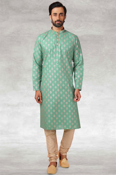 Readymade Cotton Fabric Sea Green Color Festival Wear Stright Kurta Pyjama