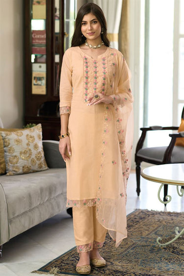 Readymade Cream Color Cotton Embroidered Salwar Suit In Casual Wear