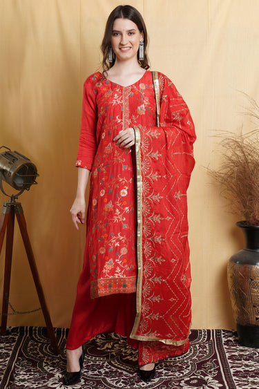 Red Art Silk Weaving Work Function Wear Palazzo Salwar Kameez