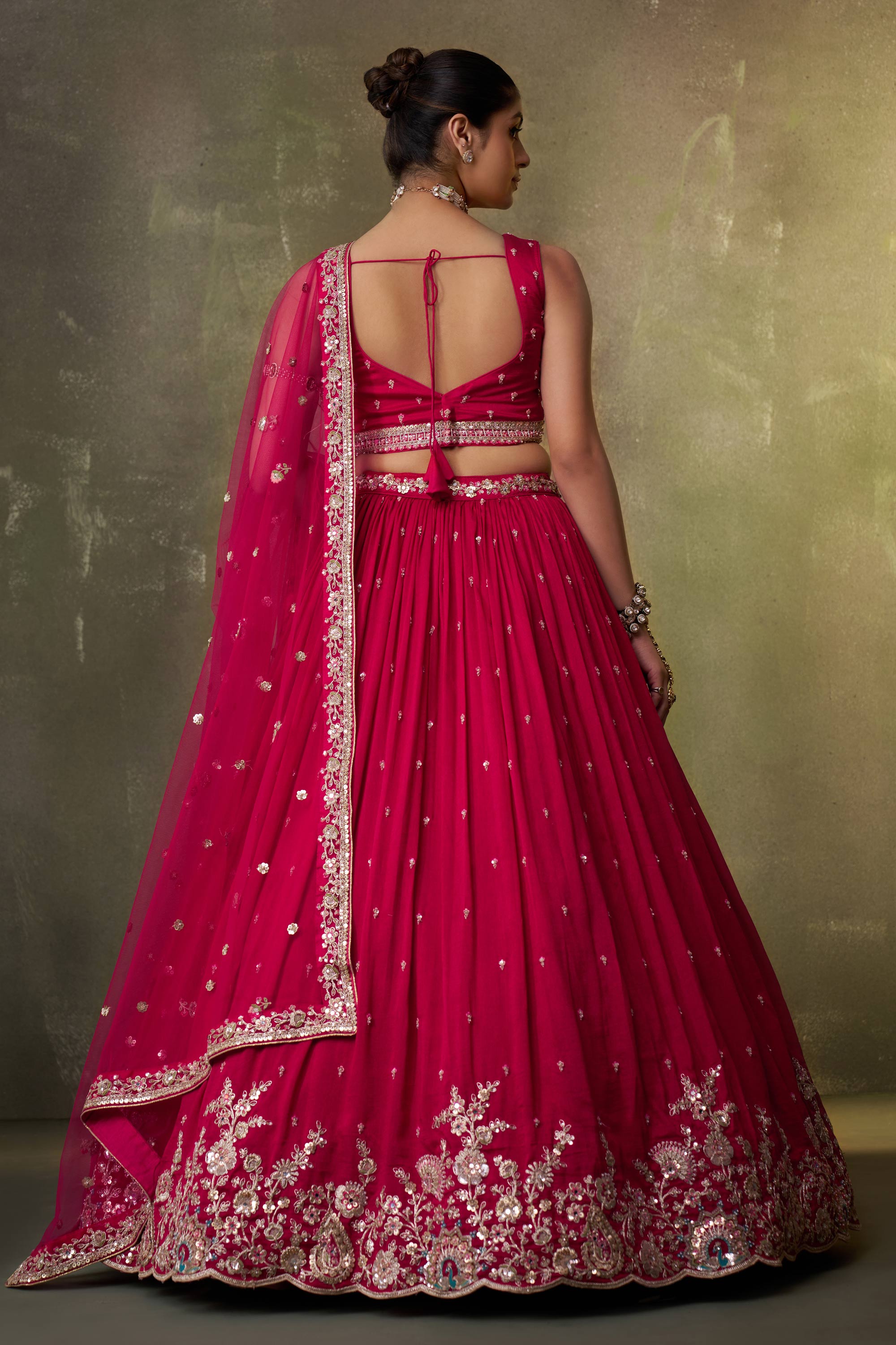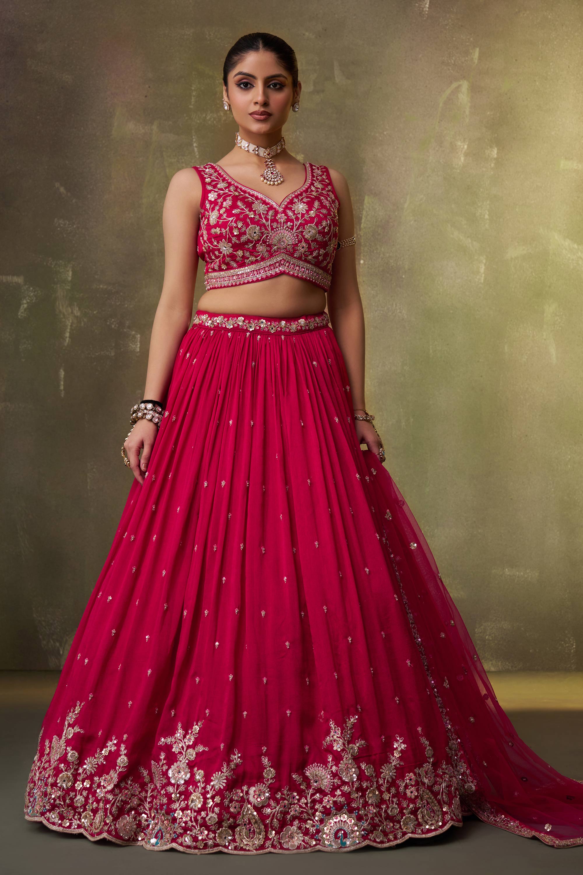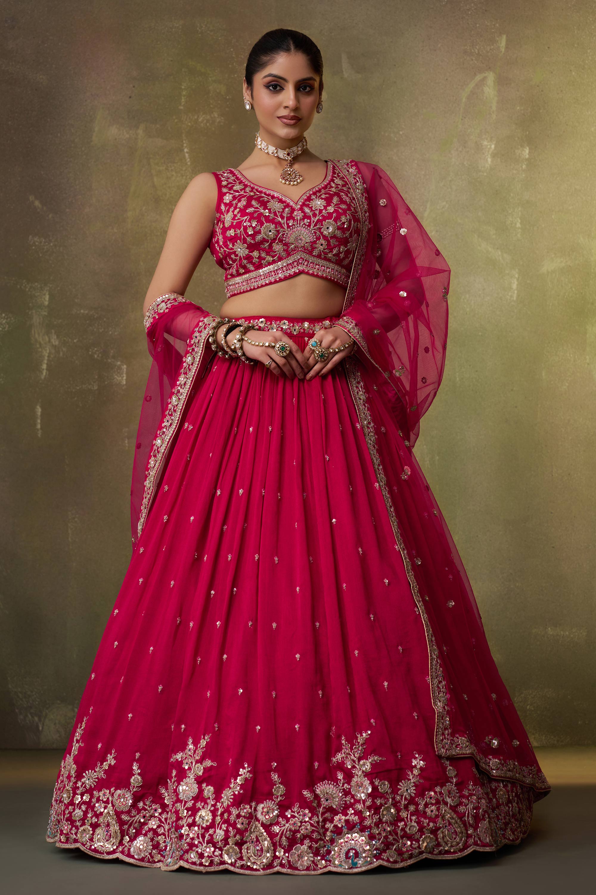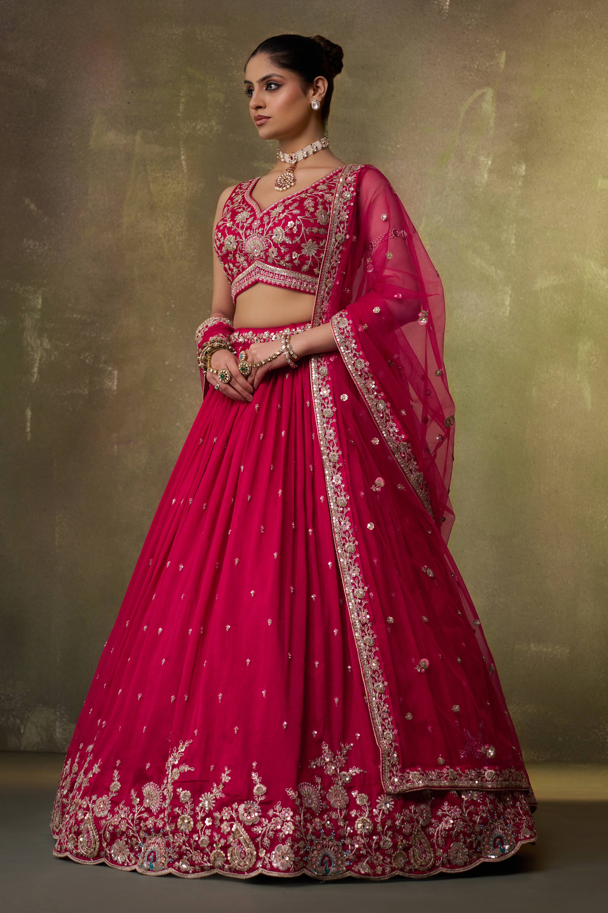 Paired with a beautifully designed blouse and a graceful dupatta, this lehenga choli creates a complete and harmonious wedding look. Its flattering silhouette and rich textures ensure you stand out with confidence and grace throughout the occasion. Due to digital photography, slight color variations may occur.