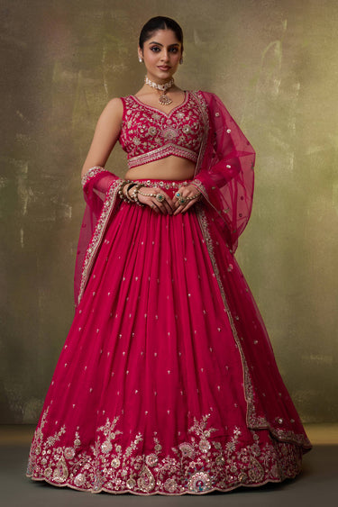 Red Wedding Wear Georgette Embroidered Lehenga Choli