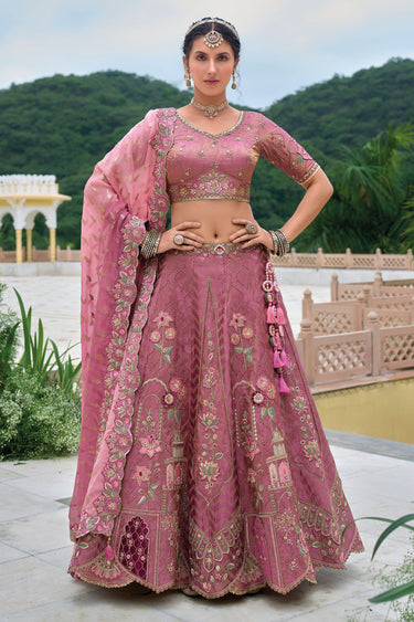 Celebrate your big day with the Royal Heritage Silk Wedding Lehenga Choli in Reach Color, a true masterpiece that embodies sophistication and grace. The luxurious silk material drapes beautifully, complemented by detailed hand embroidery and delicate sequins. Ideal for brides seeking a classic yet fashionable attire, this lehenga choli is a stunning blend of tradition and contemporary design. Elevate your bridal look with this gorgeous outfit that promises to leave a lasting impression. Limited stock available, grab yours now!