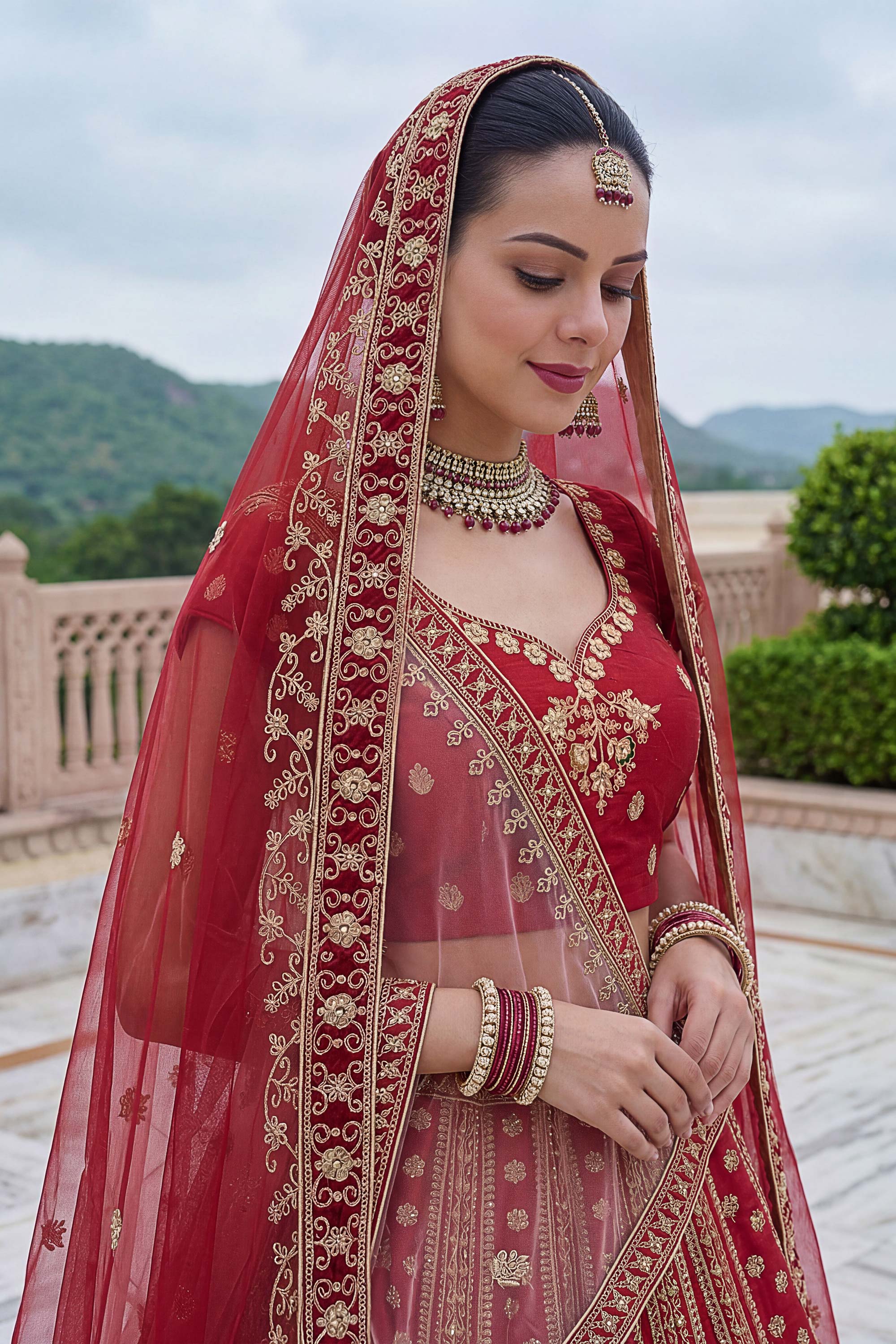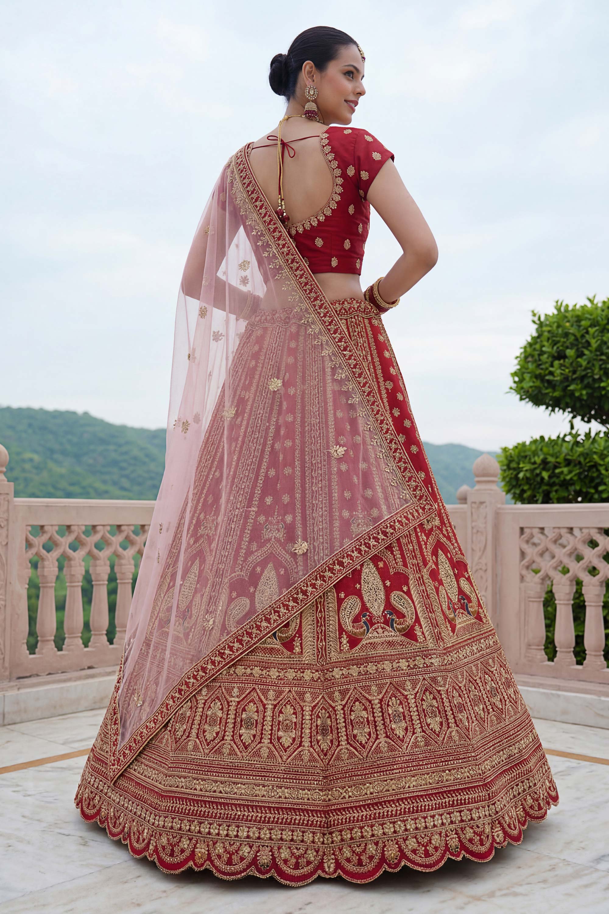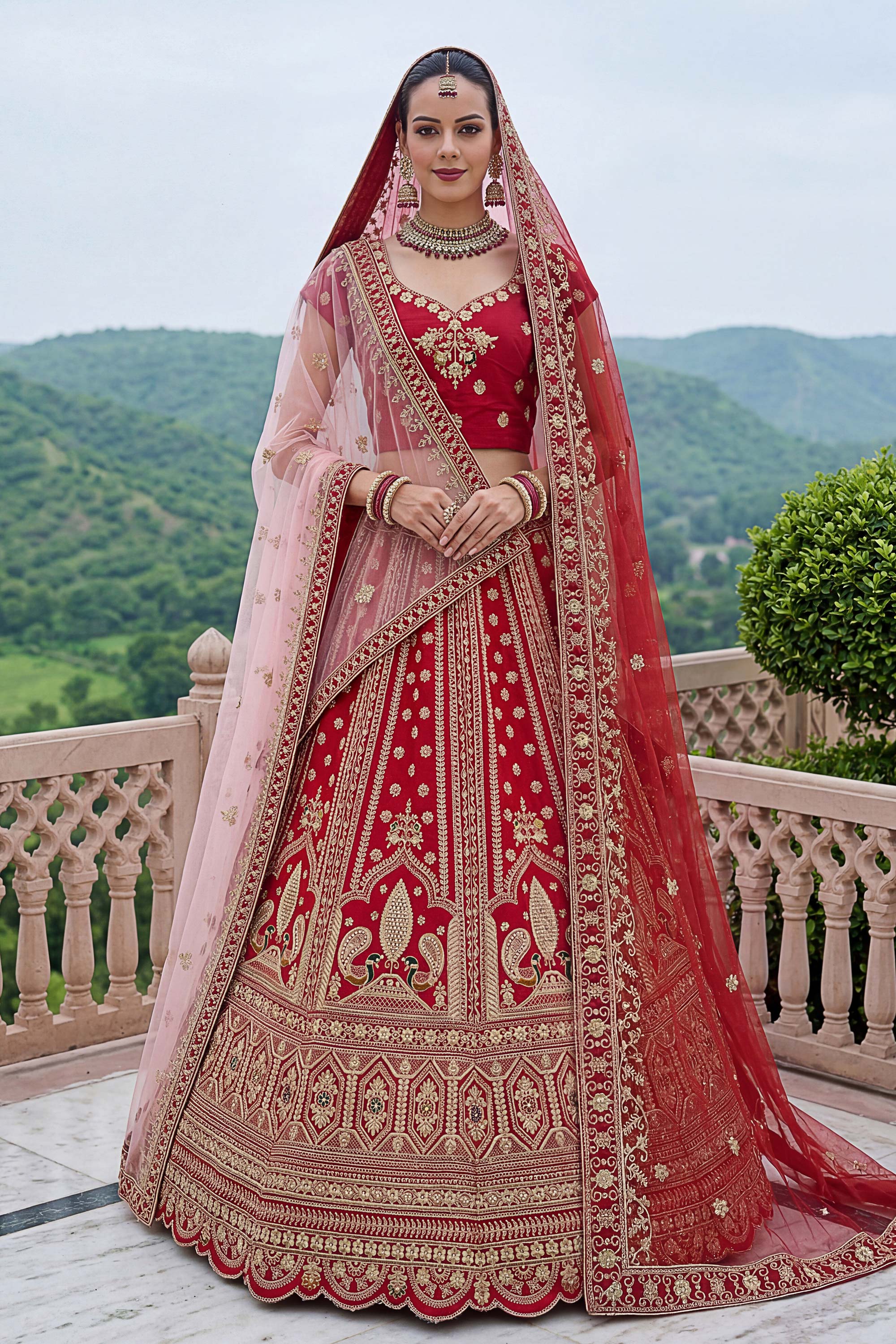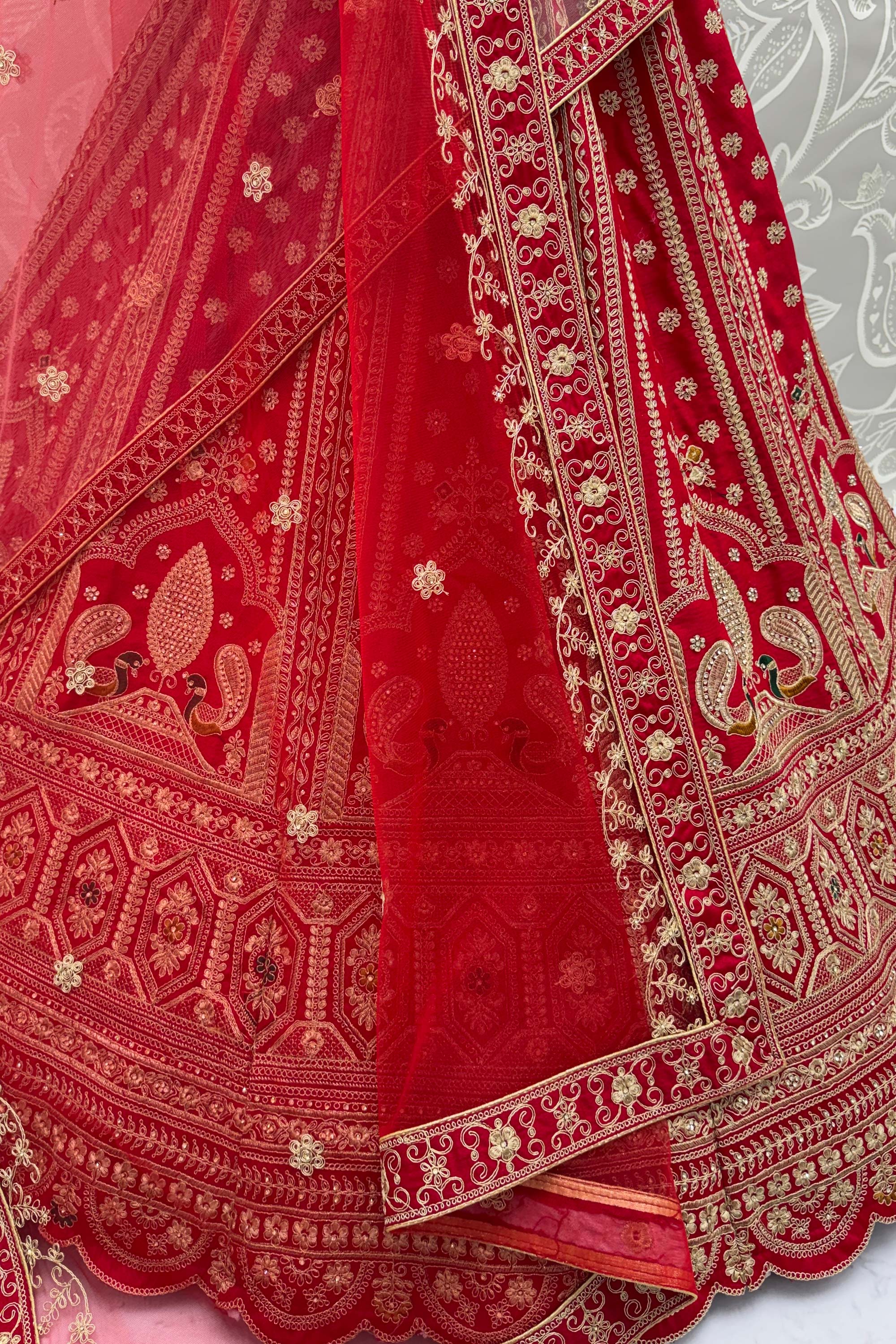 Rich Red Designer Heavy Embroidered Bridal Silk Lehenga Choli