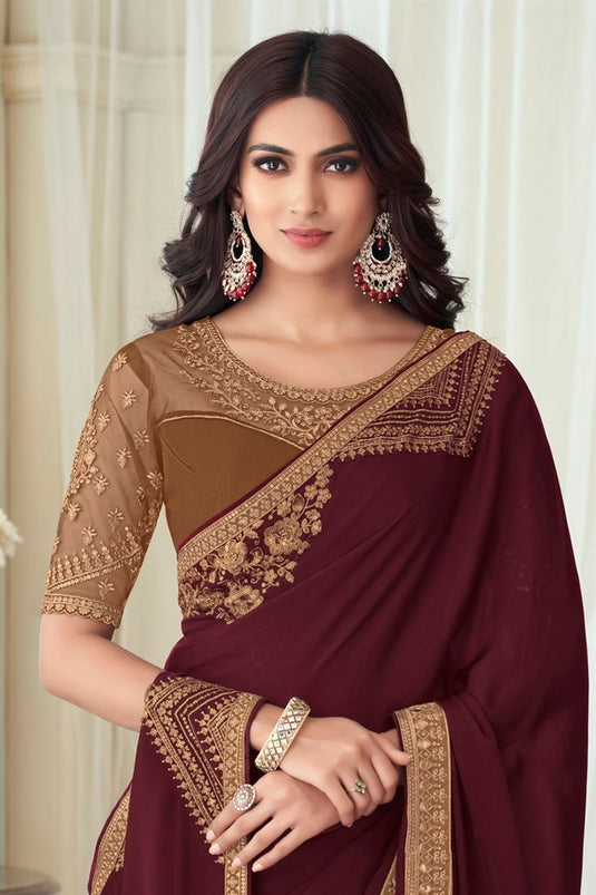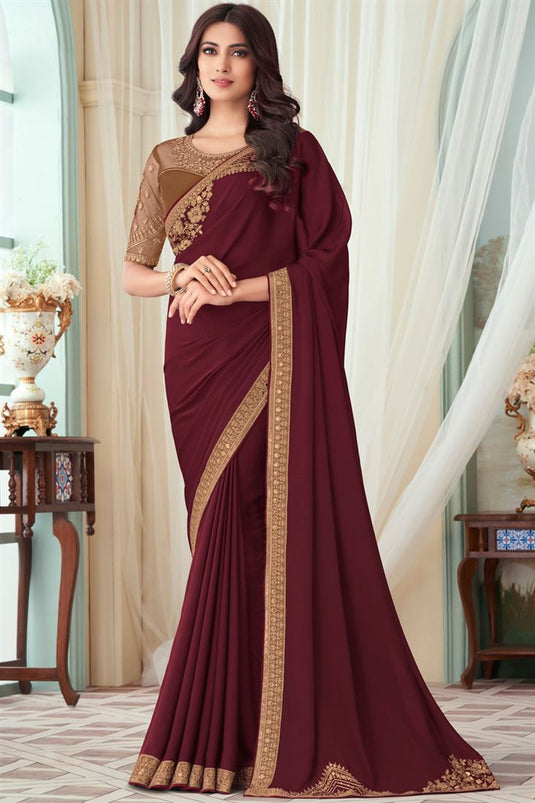 Royal Art Silk Party Saree In Maroon Color