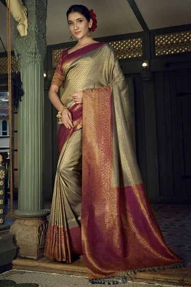 Royal Grey Golden Zari Kanjeevaram Silk Saree