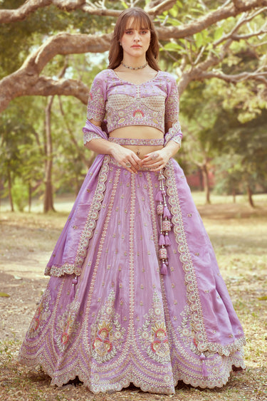 Ruby Lavender Pure Tissue Heavy Embroidered Bridal Lehenga Choli