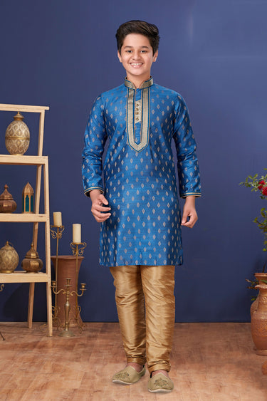 Sangeet Function Wear Jacquard Silk Fabric Sky Blue Color Readymade Kurta Pyjama For Boys