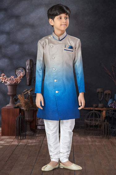 Sangeet Wear Blue Color Readymade Indo Western For Boys