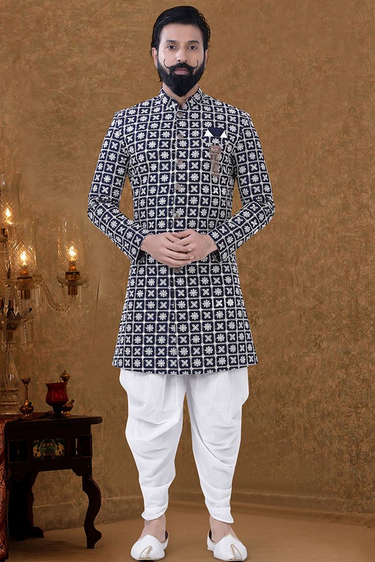 Sangeet Wear Cotton Fabric Navy Blue Color Supreme Indo Western