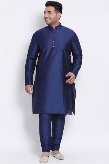 Sangeet Wear Dhupion Silk Fabric Navy Blue Color Plus Size Kurta Pyjama
