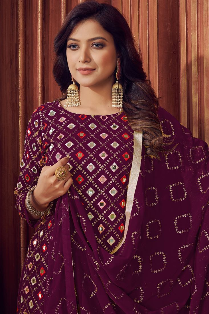 Sangeet Wear Georgette Fabric Purple Color Embroidered Palazzo Suit