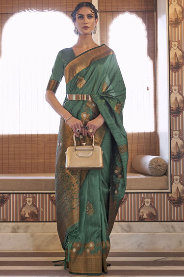 Sangeet Wear Green Color Art Silk Fabric Chic Saree With Weaving Work