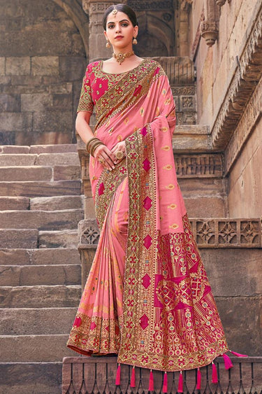 Sangeet Wear Peach Color Aristocratic Art Silk Fabric Saree