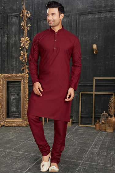 Sangeet Wear Readymade Kurta Pyjama For Men In Cotton Maroon Color